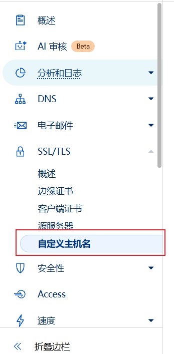 在 CF 的控制台,打开 SSL/TLS->自定义主机名,添加回退源 origin.example.com