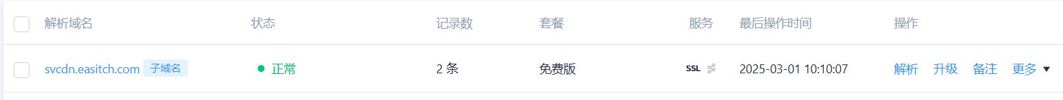 然后到DNSPOD中添加一个二级域名(svdns.easitch.com)