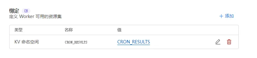 创建一个名为`CRON_RESULTS`的KV变量,并绑定到workers。