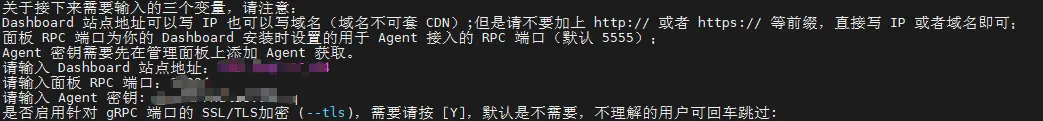 - 提示是否开启GRPC的TLS功能的时候输入false。